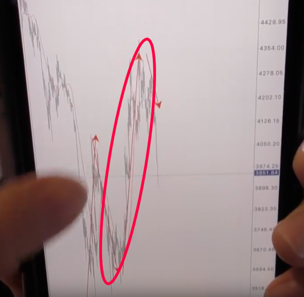今回は右図の赤で囲った短期的な転換を狙っていましたが、