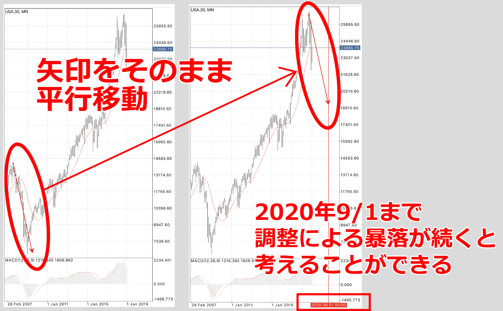 なんと、2020年の9月まで調整相場で株価が落ちていく可能性が考えられます!