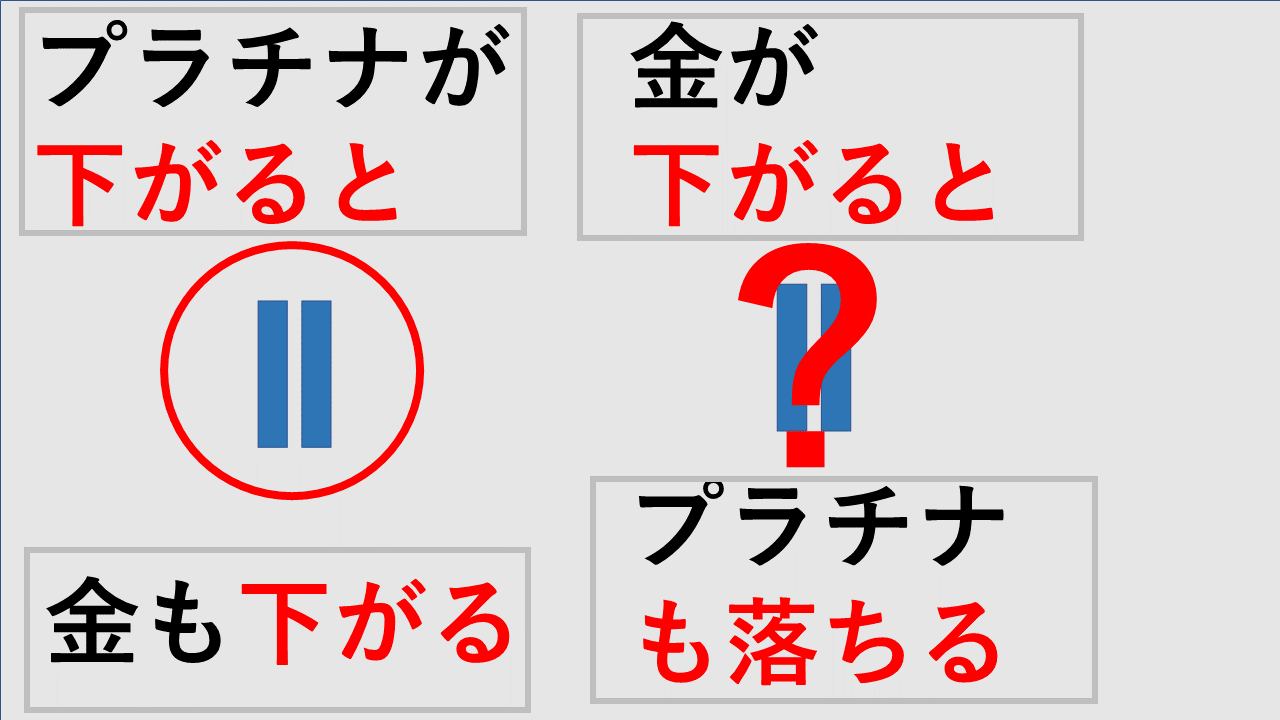 今回の結果でプラチナが落ちてくれば金も落ちてくると考えることができますが金が落ちるとプラチナが落ちるか?というとその限りではないかなと考えています。