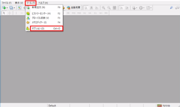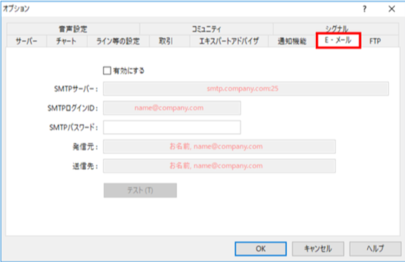2.mt4の上メニューの「ツール」→「オプション」 →「E-メール」タブを選択します。