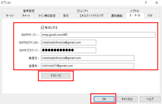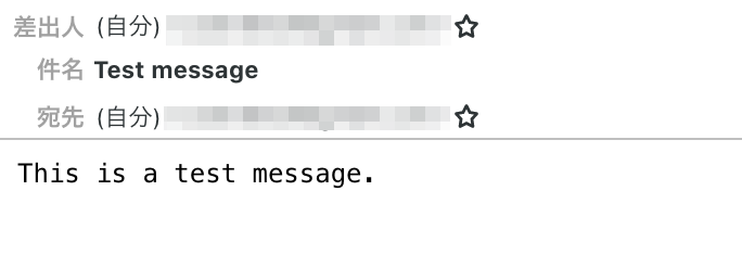 これらを入力したら、「テスト」を押すとテストメールが送信されます。