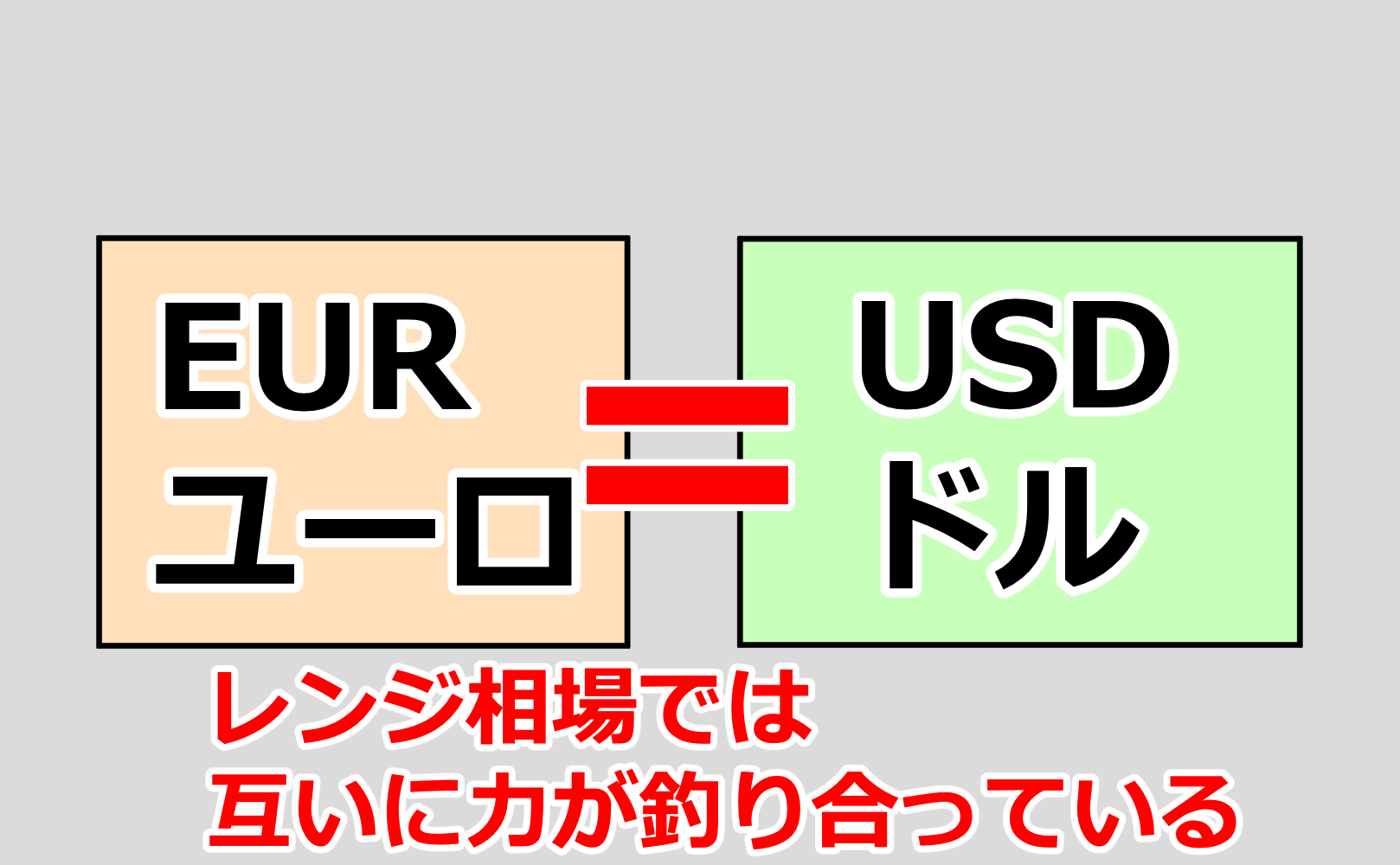 EURUSDがレンジ相場ということから、力関係がEUR(ユーロ)=USD(ドル)と見ることができます!