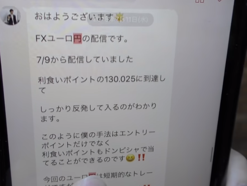 そして次に為替のユーロ円についても暴落すると言っていました!そのときの実際の配信とFXのチャートをみていきましょう!