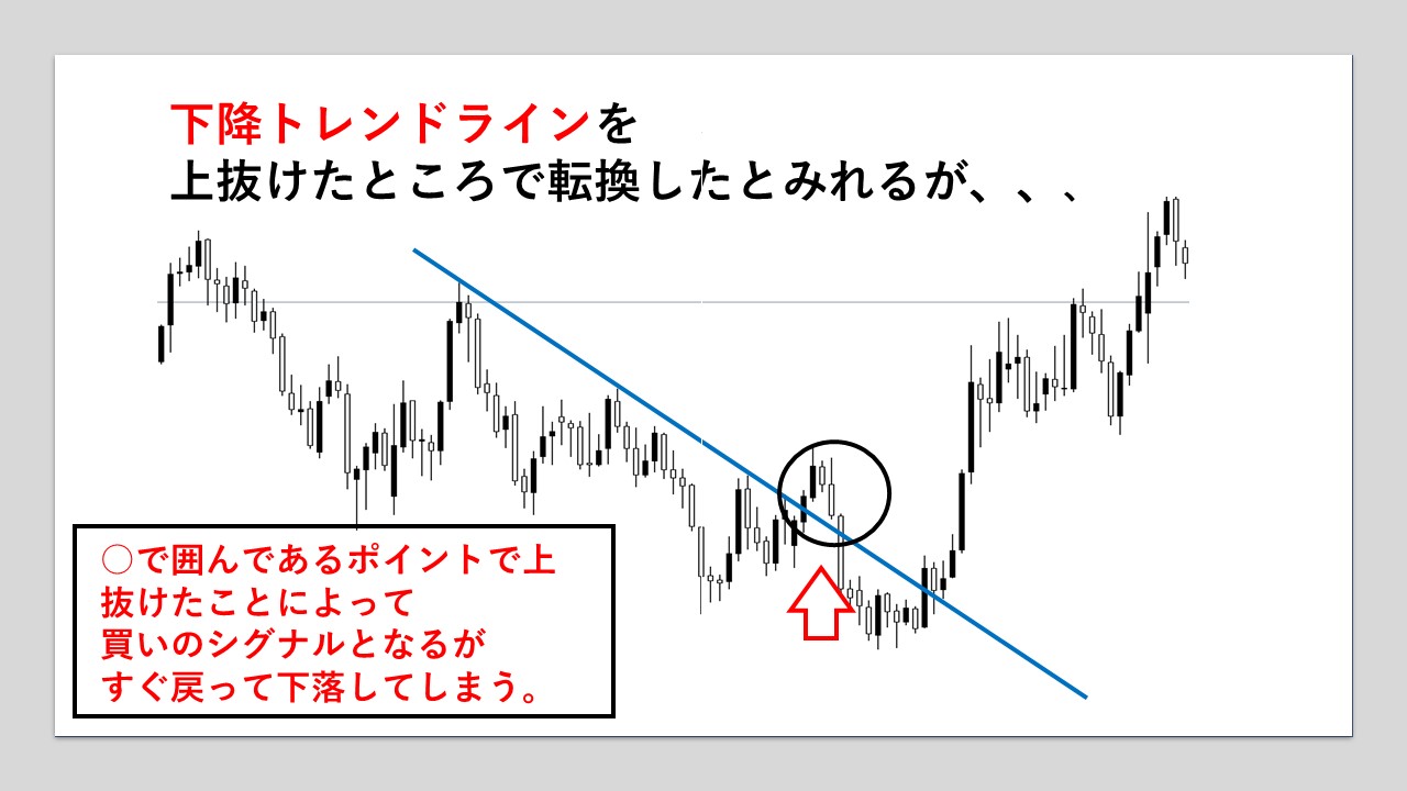 だましというと何のことか?と思われるかとおもいますが、どうしてもライントレードを中心にトレードをしているとこのラインを抜けたから買いだ!