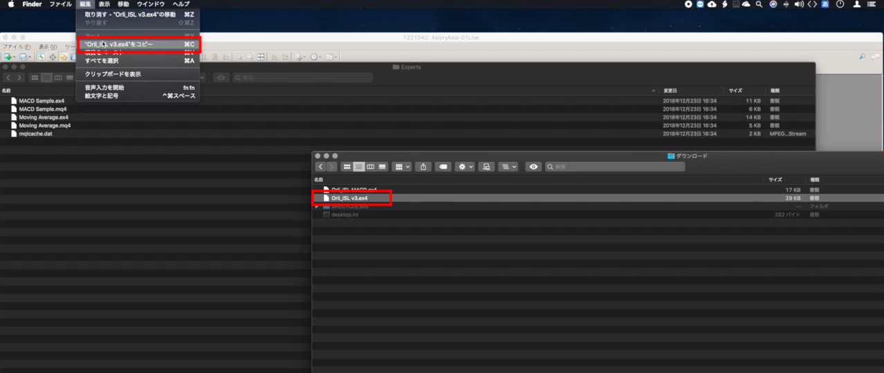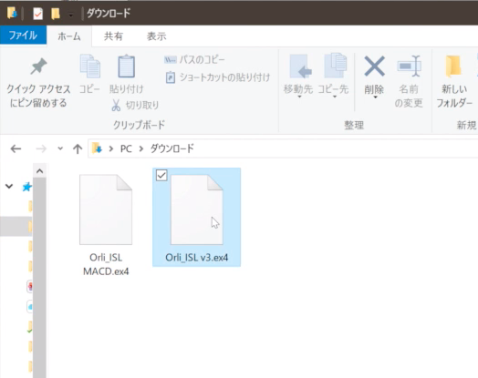 11.ダウンロードフォルダに保存されている「Orli_ISL v3.ex4」を選択し、上メニューから「編集」→「コピー」を押してください。