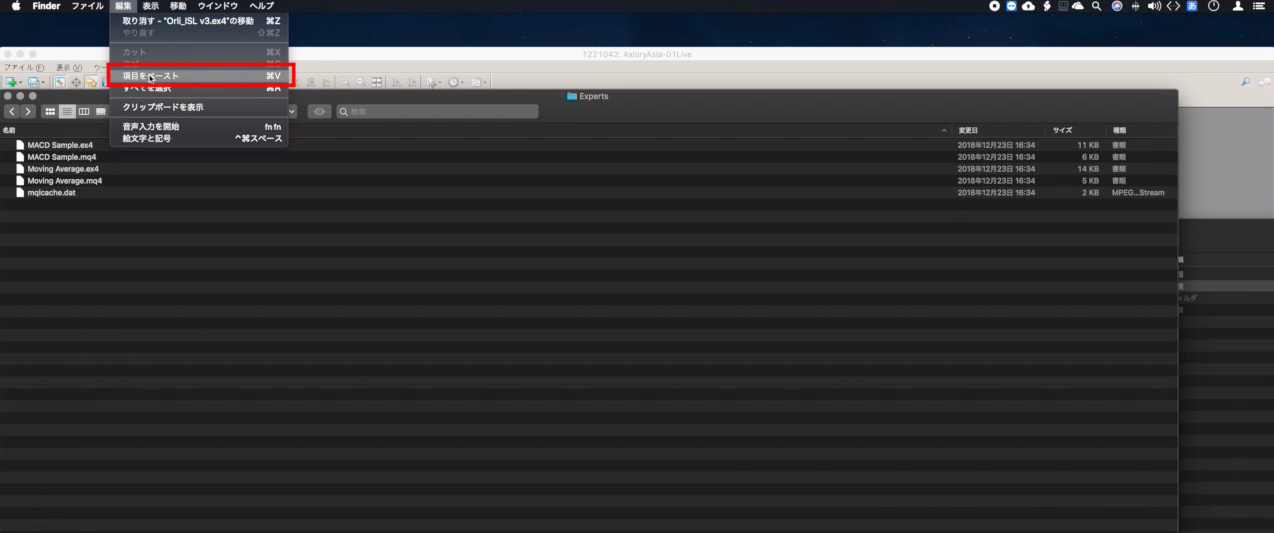 12. 「Experts」フォルダの上で上メニューから「編集」→貼り付けを押してください。