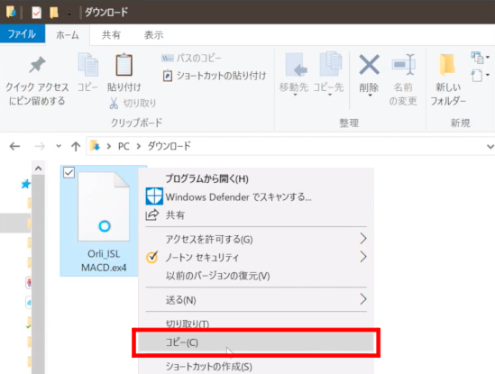 4.ダウンロードフォルダに保存している 「Orli_ISL v3.ex4」の上で右クリック → コピーを押してください