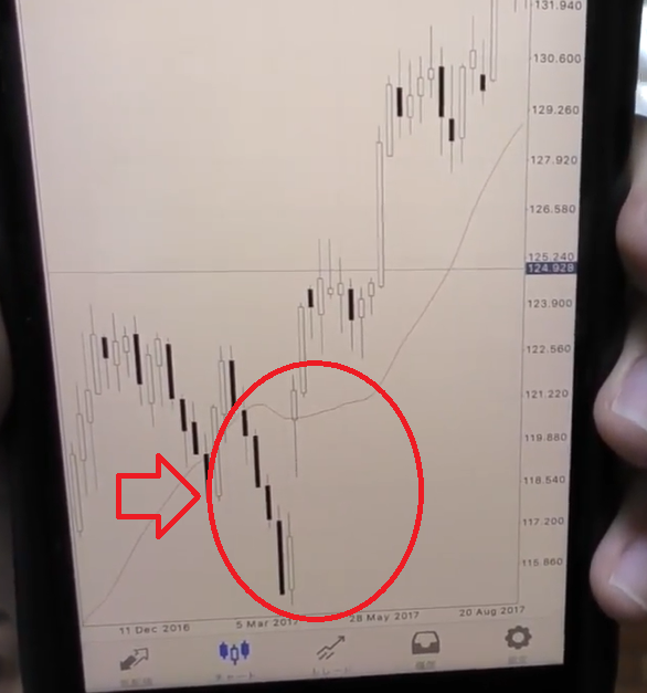 それがちょうど117円あたりで次のことを窓を閉めるという言い方をしますが、空いた価格を埋めてくるように価格が戻りやすいチャートの特性をみています。