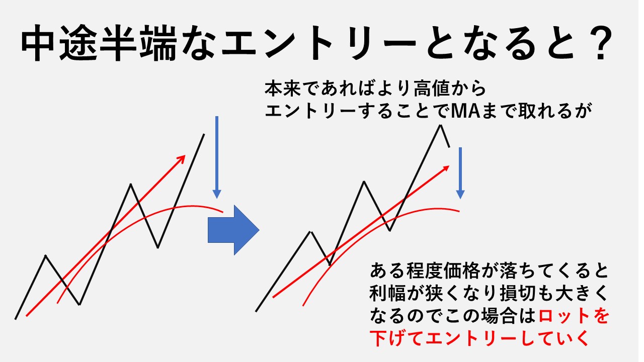 そうすることによって値幅も大きくとれますがある程度価格が落ちてきてしまうと上がるリスクもある分損切りも大きくなりますし狙える値幅も小さくなるので資金管理としては小さなロットで狙っていきます!