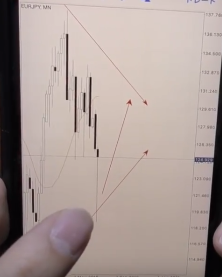 この動きを実際ユーロ円の月足チャートであてはめたものが先ほどの画像ですね!