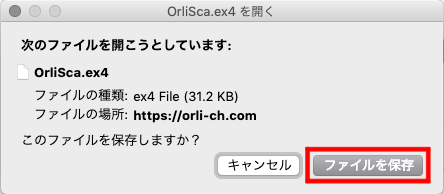 オリスキャのダウンロードリンクをクリックすると、このようなウィンドウが表示されるので、「ファイルを保存」を押してください。