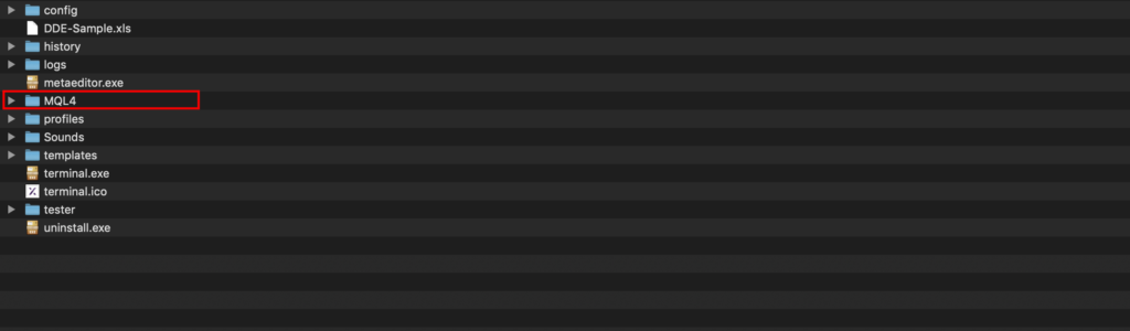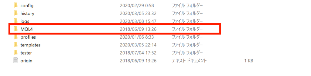 (※一度MT4を起動しないと出てこないので、このフォルダが表示されていないときは一度MT4を起動してみてください。)