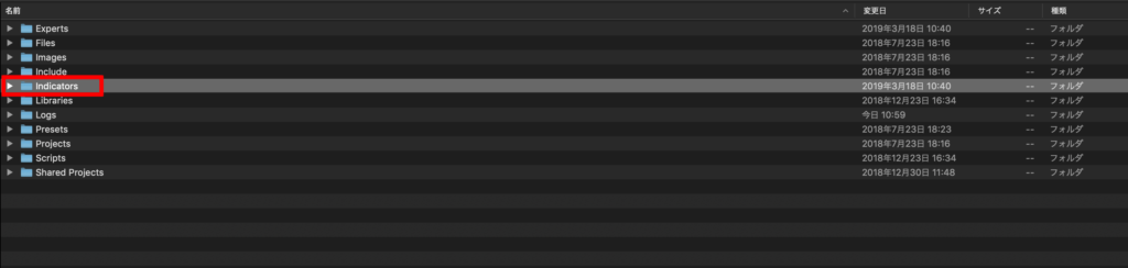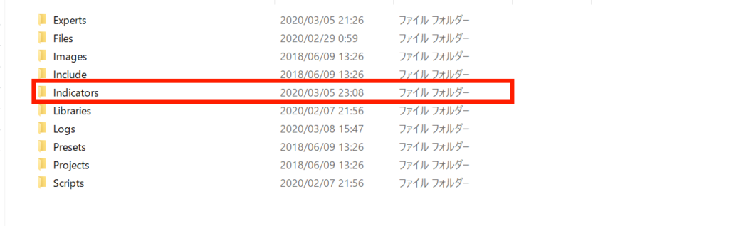 8.Indicatorsフォルダを開いてください。