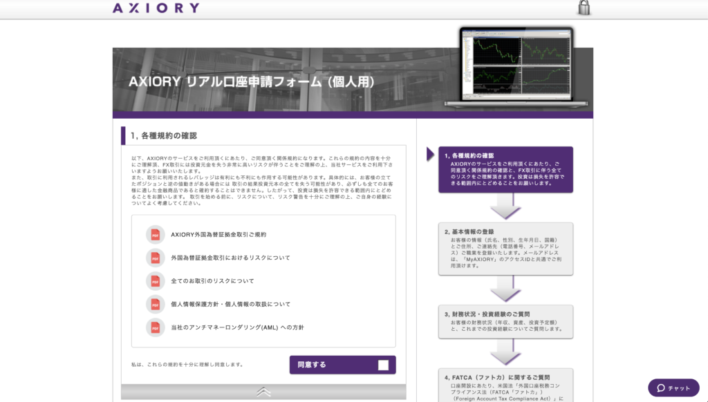 理解ができましたら、早速、アキシオリー(Axiory)という証券会社のリアル口座を開設していきましょう!