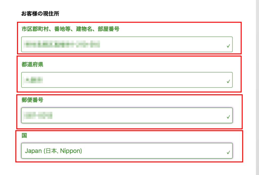 次に、住所を入力します。住所を入力したら、最後の国で先程と同じように、「Japan(日本, Nippon)」を選択してください。