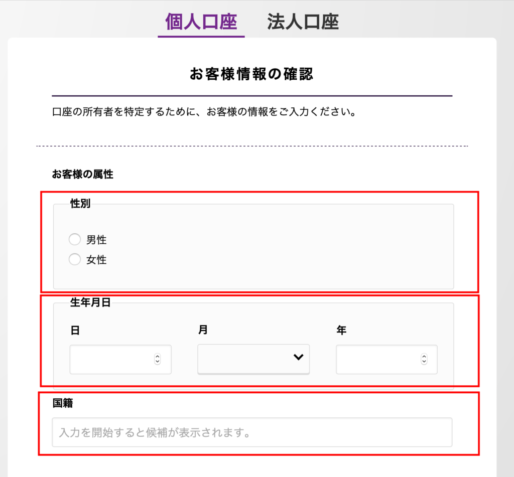 法人口座を作られる方は上の「法人口座」、個人口座を作られる方は「個人口座」を押してください。