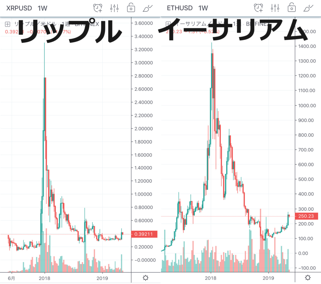 他の仮想通貨のチャートと実際に比較したものを見てみたいです!