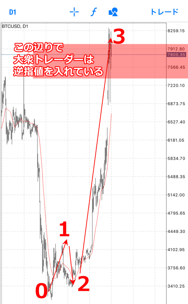 あ、でもどうやって大衆トレーダーが逆指値にかかると分かったのか、またビットコインだけが仮想通貨の中でなぜ、暴騰したのか知りたいです!