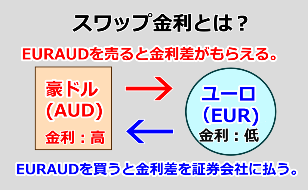 メジャーな通貨でもEURAUDが同じようにスワップ金利をもらえるので、どういう仕組み見ていきましょう!