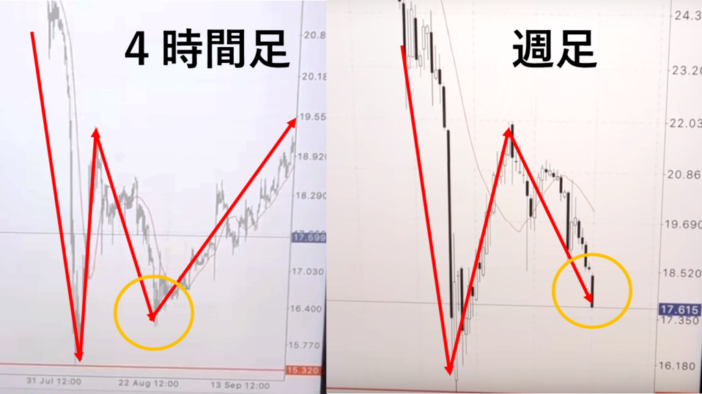 そうです!先ほどの4時間足のチャートと似てますよね!