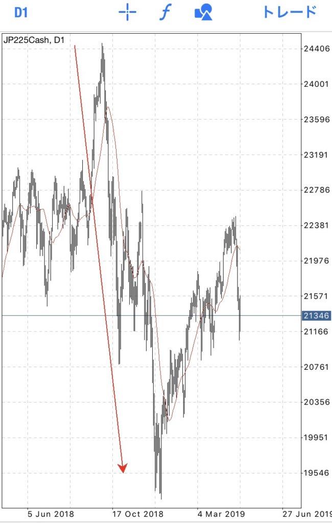 たしかに、こうしてみると落ちるときは一気に落ちていきそうなチャートですね!