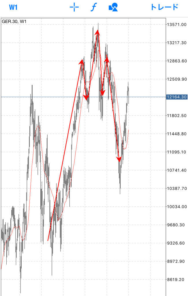 なるほど〜 実際にドイツ株ではどのようにヘッド・アンド・ショルダーが出現してたんですか?