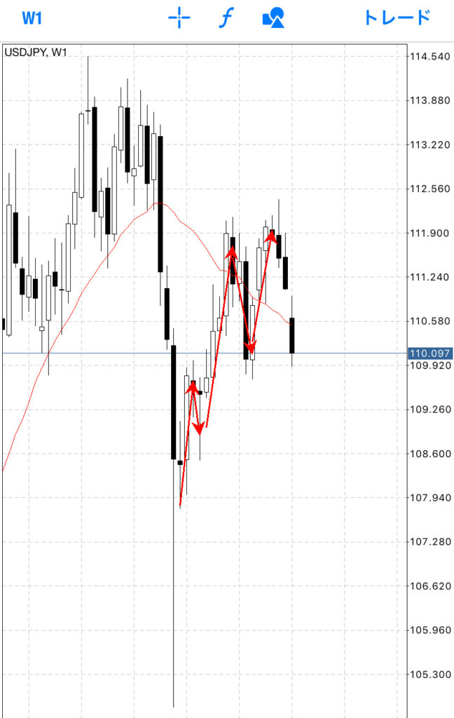 ドル円はちょうど上昇波のときも 5波形成になっていました。 これも株価の大暴落を読み解いた根拠ですね!
