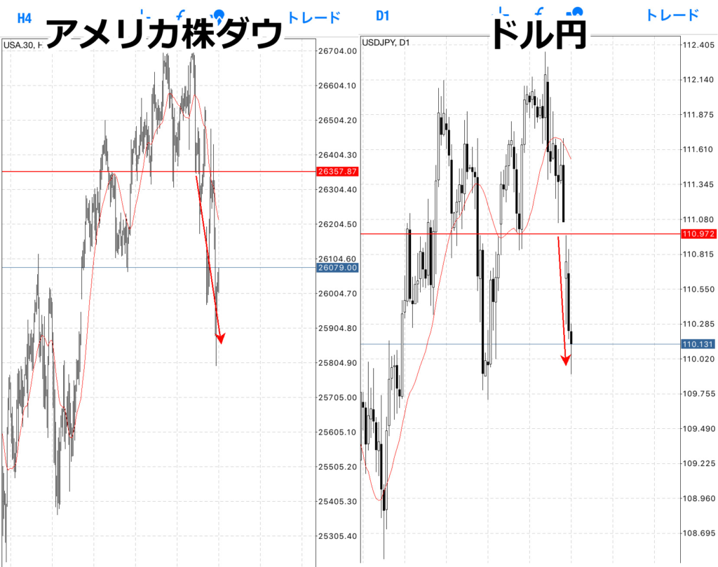 こちらがアメリカ株ダウとドル円のチャートになります!