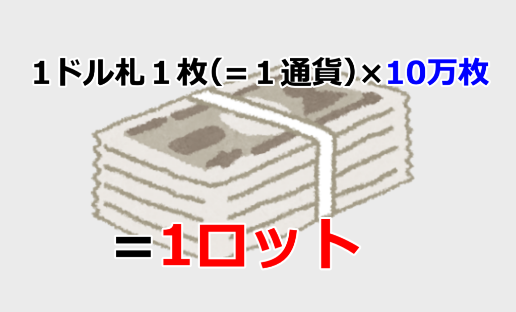 正解です!この10万通貨をまとめて、「ロット」という単位で数えます!