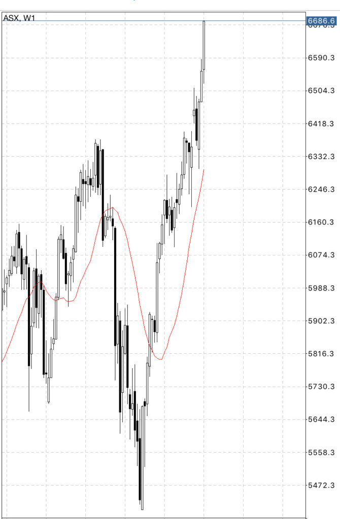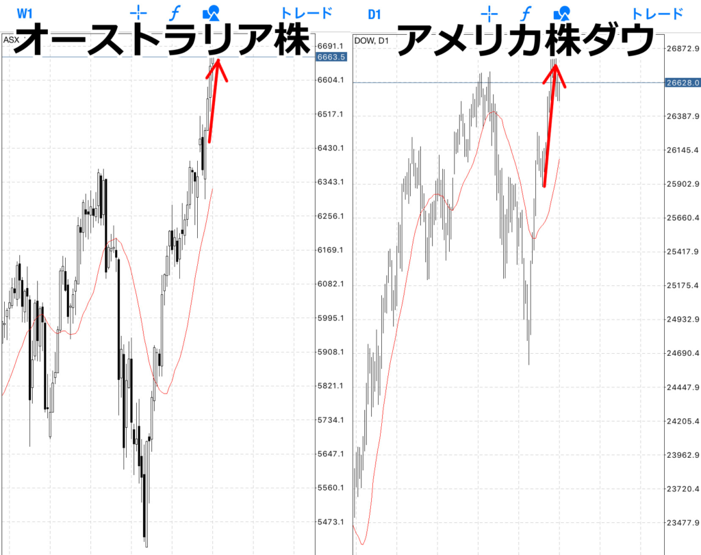 確かにニュースで利下げとなって株価は上がりました。しかし月足でオーストラリア株を見ると、グランビルの法則4番が出ているのには変わりありません。
