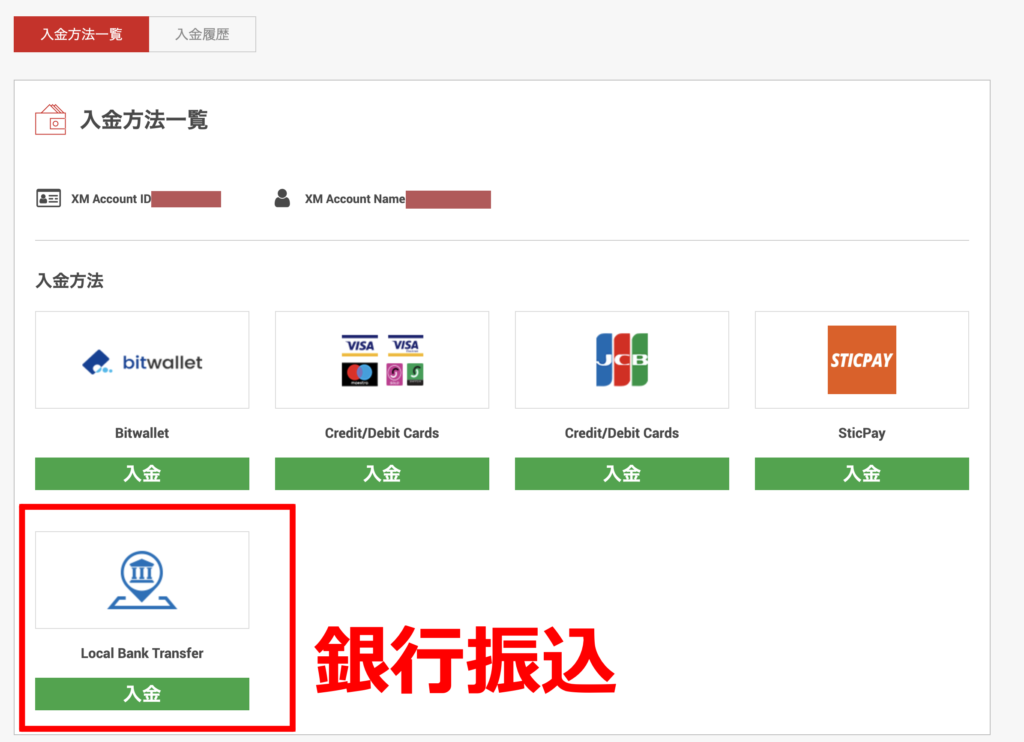 まずFX証券会社XMの場合、銀行振り込みでの入金が一番カンタンです!