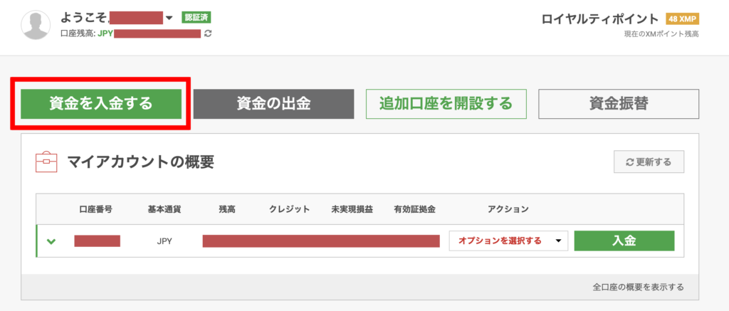 チアキさんがクレジットカードで、XMの口座に5万円入金したとしましょう。