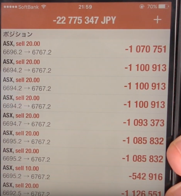 オーストラリア株をロットを張って狙っていたオーリーですが、実は一気に爆上げしてきてマイナス2000万円もの含み損になっています。