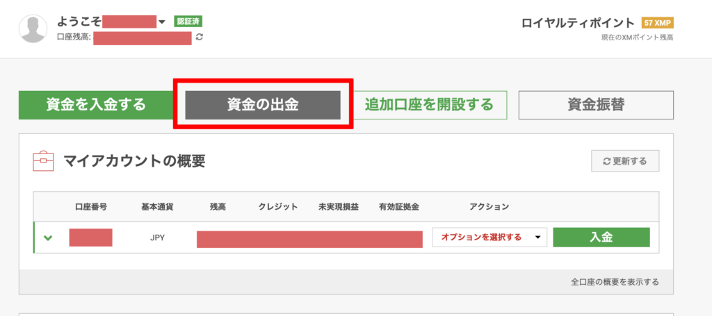 すると「資金の出金」というボタンがあるので、こちらをクリックします。