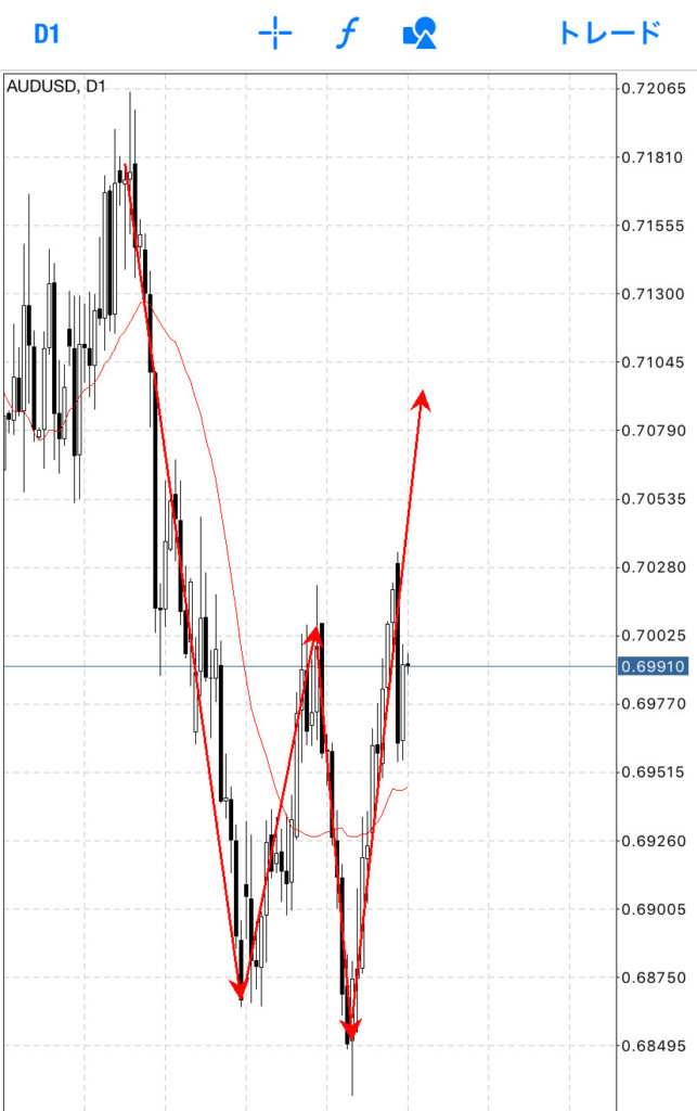 ダブルボトムはW字形に現れるフォーメーションで、この形が出てくると上昇に転じやすい傾向があります!