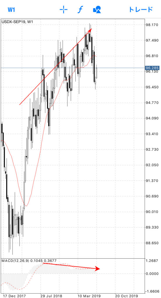 よく覚えてましたね!実は、ドルインデックスのチャートにもダイバージェンスが出現してたんです!