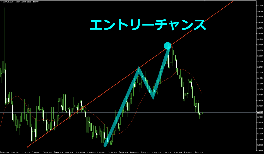たとえば、グランビルの法則4番で移動平均線から乖離して、かつトレンドラインにぶつかったらエントリー...このようにしていくと、勝率も上がっていくと思います!