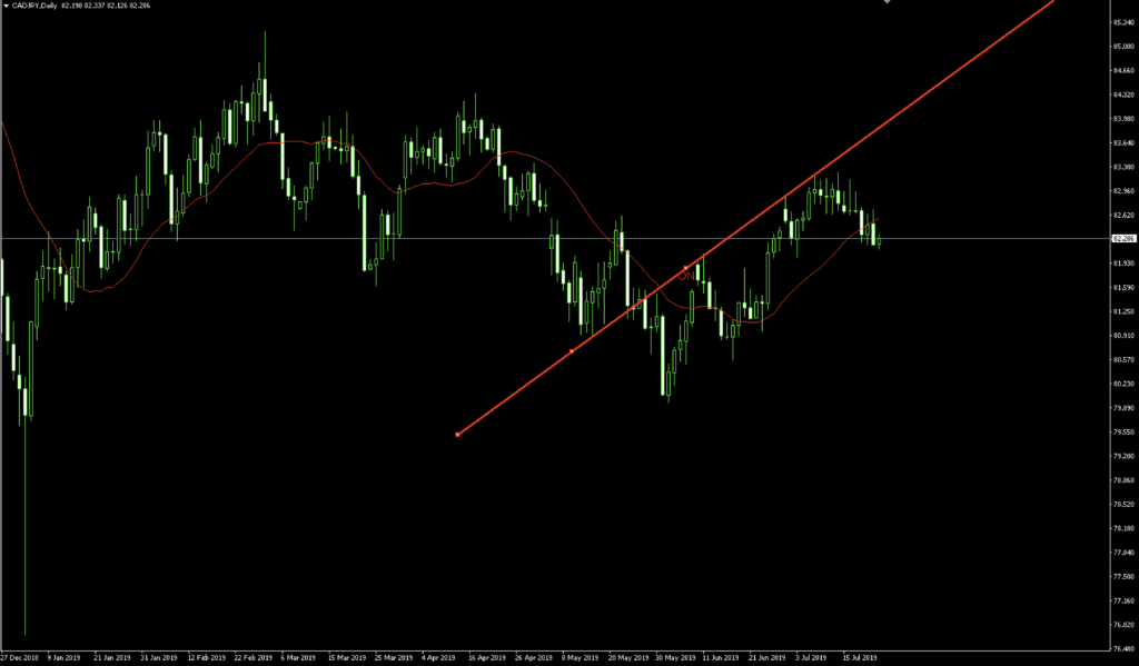 グランビル4番は右肩上がりの移動平均線に沿って価格帯が上昇していく中、