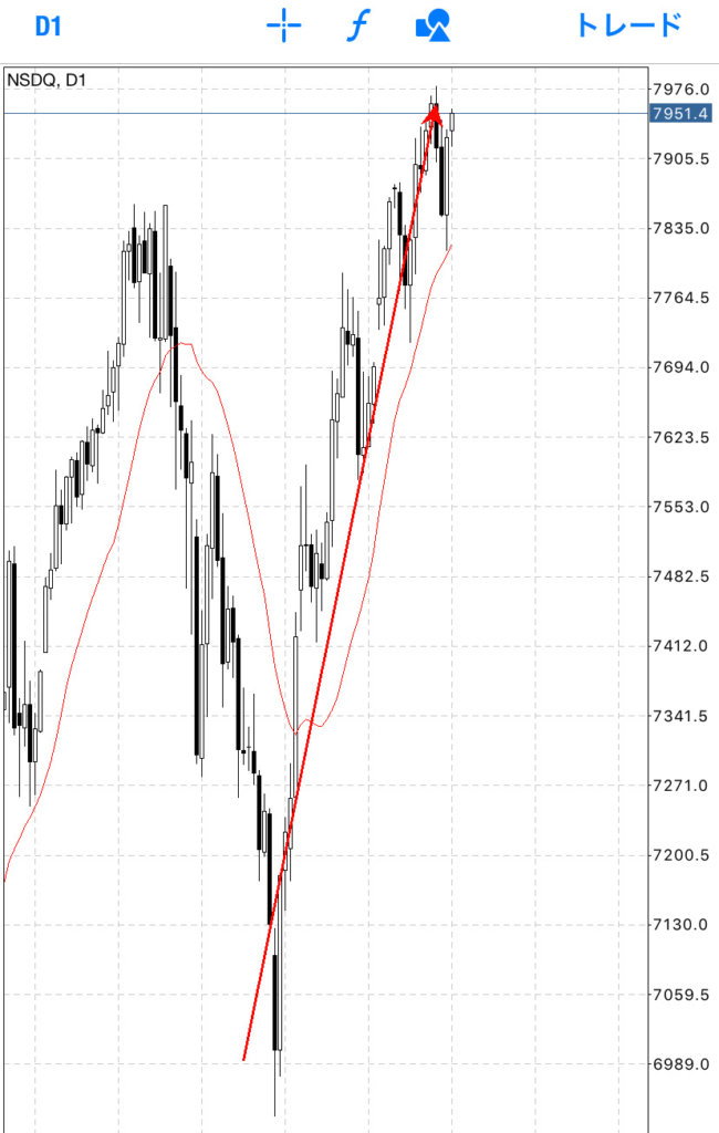 実はアメリカ株ナスダックはここ最近ずっと上昇して最高値を更新し続けていました。