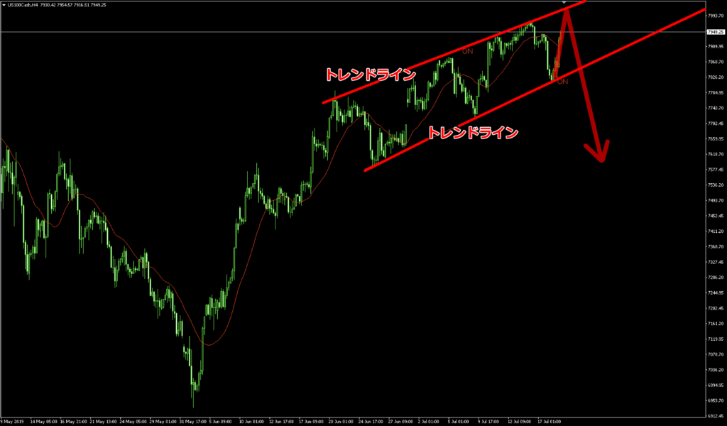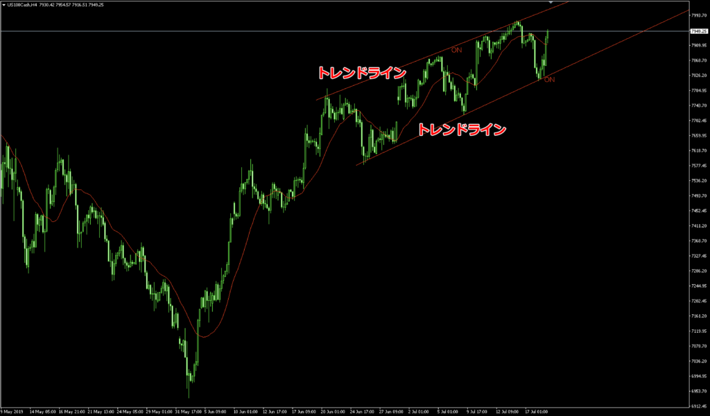 チャートはトレンドラインに当たると反発しやすい傾向があります。