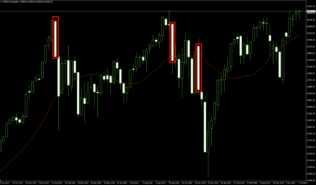 これが実際のアメリカ株ダウの大陰線ですが、この大陰線が発生したときから大きく暴落が発生しました。