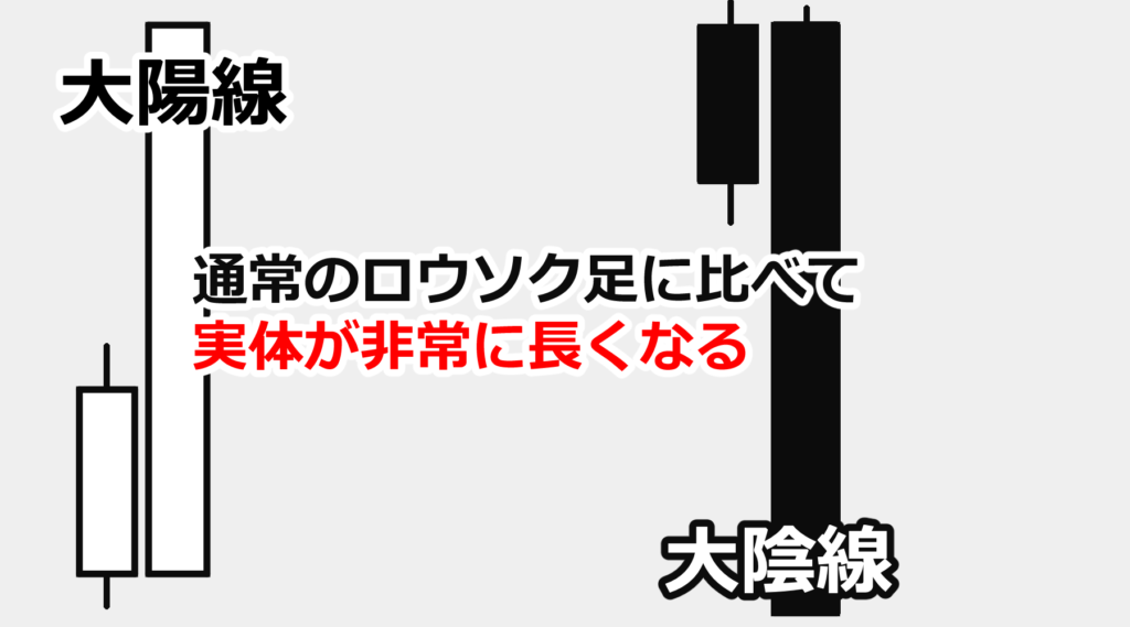 大陽線・大陰線は、簡単に言うと陽線・陰線がとても長いバージョンのことです!