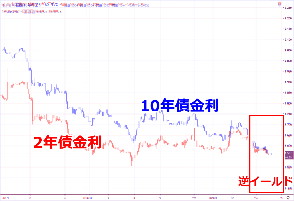 現在、長期金利が短期金利を下回る「逆イールド」が発生しています。