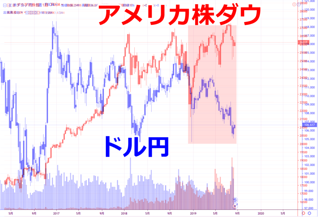 だから株価が落ちているのにドル円は上がっている・・・といった現象が起きていました。