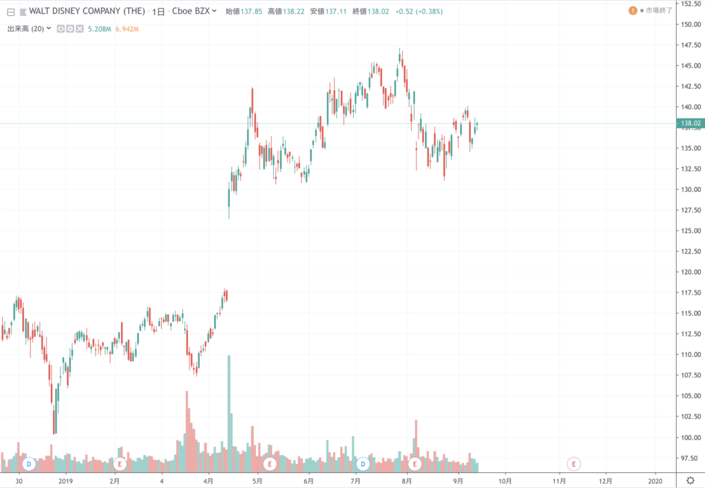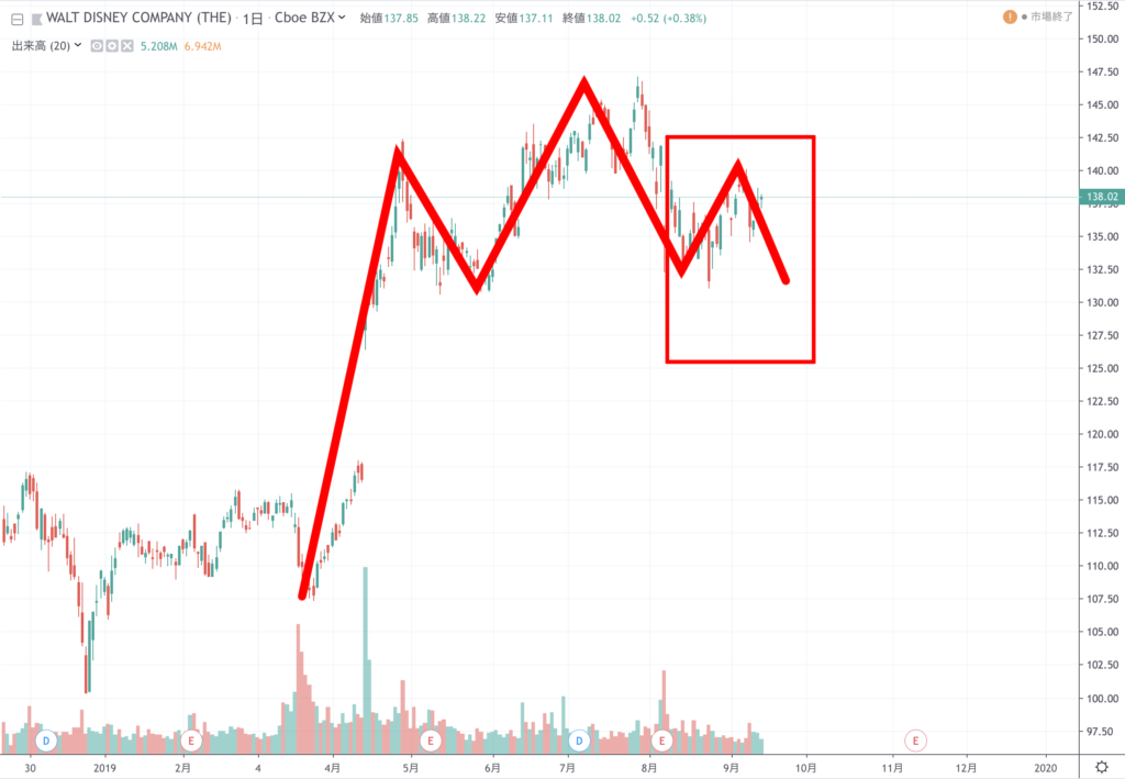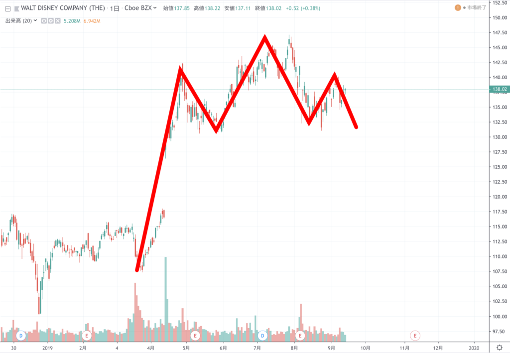 そうです!実はウォルトディズニー株に、ある形が見えてきます。それは何だと思いますか?