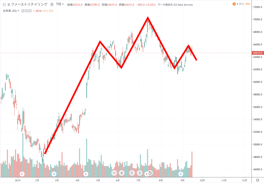 ファーストリテイリング社株でもヘッド・アンド・ショルダーを確認!