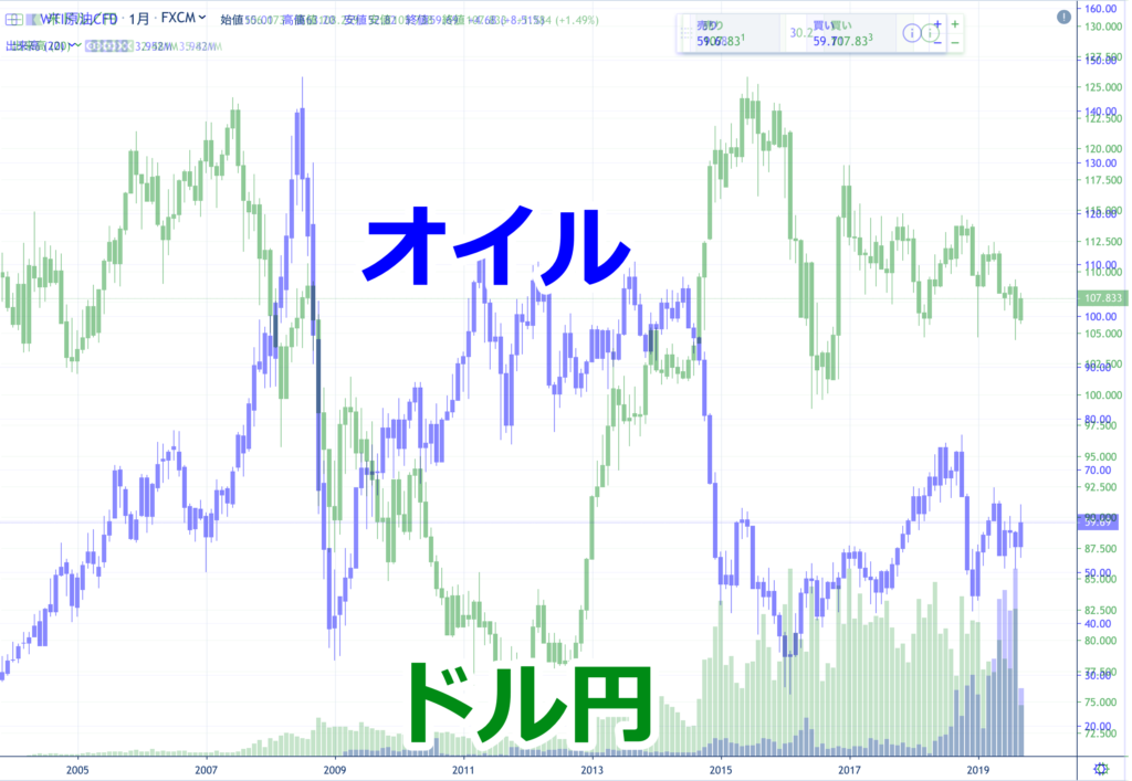 えっと・・・オイルとドル円は逆の動き、すなわち逆相関になっているんでしょうか?