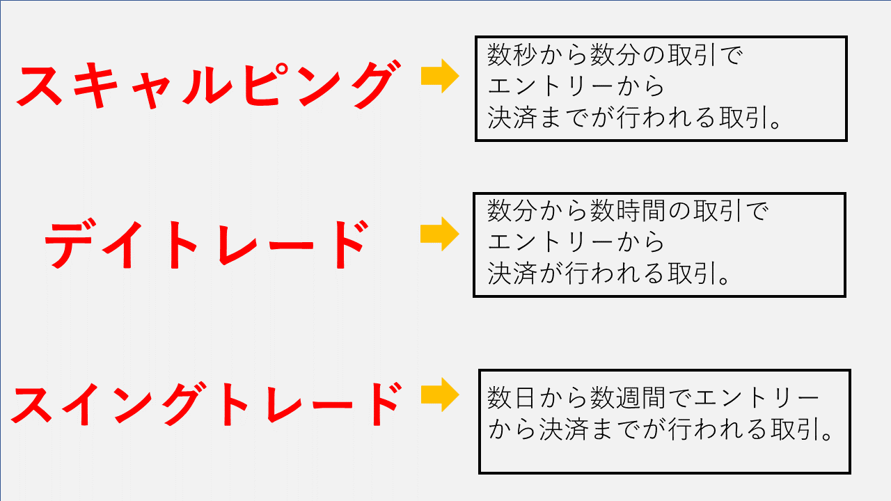 ちょうど、デイトレードとスキャルピングの中間に当たるのがデイトレードです!