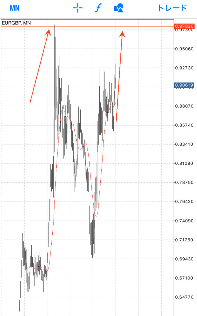 ユーロポンドの月足チャートがこちらになります。