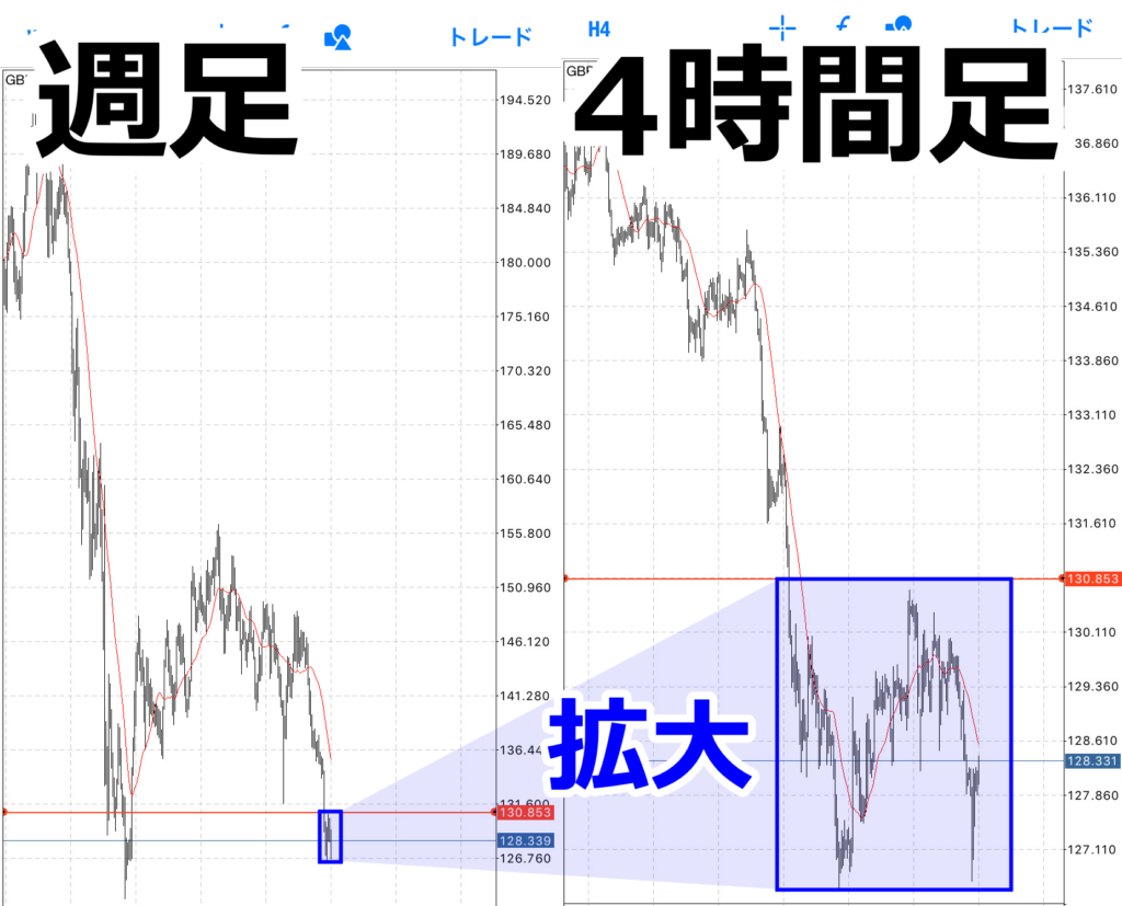 あれ!?4時間足と週足が同じ形ですか!?